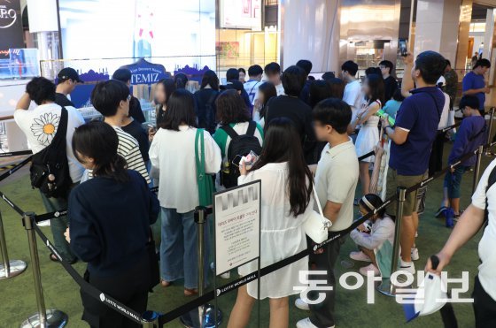 지난달 21일 ‘두바이 초콜릿’을 파는 백화점 팝업 매장 앞에 줄 선 사람들. 두바이 현지에서 파는 초콜릿 제품이 SNS를 통해 알려지면서 없어서 못 구하는 인기 먹거리가 됐다. 신원건 기자 laputa@donga.com● 소외될 것 같은 막연한 불안감