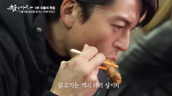 KBS K푸드쇼 ‘맛의 나라’에서 닭 다리를 먹고 있는 류수영. KBS 다큐 유튜브 캡처류수영은 지난 2일 자신의 인스타그램을 통해 “‘류수영은 닭 다리를 세 개 먹었는가’를 궁금해하시는 분들이 계셔서 그 장면에 대해 말씀드리려 한다”고 전했다.