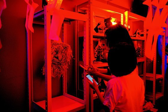 빨간 경고문이 붙은 문을 열고 제한구역에 발을 내디뎠다. 으스스한 푸른 조명이 깜깜한 복도를 비추고 공포 영화에 나올 법한 음악이 은은하게 깔렸다. 긴 식탁이 놓인 다이닝룸에 들어서자 유령 조사단 관계자가 무겁게 말문을 열었다. “이곳은 공연이 끝난 배우들이 식사하는 곳이자 ‘버나돌이 유령’이 숨어 있는 곳입니다”. 관객들이 AR(증강현실) 모바일앱으로 내부를 비추자 하늘색 외눈박이 유령이 눈 앞에 튀어나왔다.