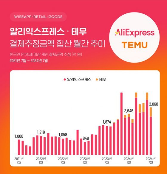 “알리·테무, 전월 합산 결제추정금액 3068억원…전년比 64%↑”