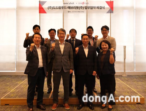 도드람과 에브리봇이 서울 강동구 도드람타워에서 서빙 로봇 도입 관련 업무협약을 체결했다. 도드람한돈 인증점을 포함한 주요 협력업체 음식점에 최신 서빙 로봇과 외식 전용 솔루션을 도입해 외식 서비스 활성화를 추진한다.