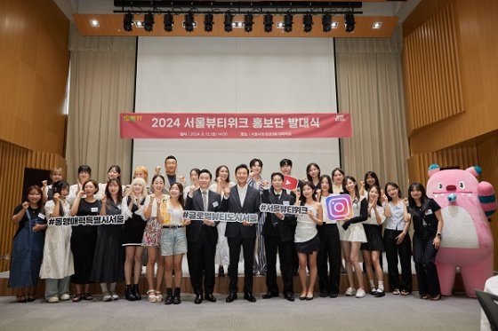 최인석 레페리 의장과 오세훈 서울시장, 뷰티 크리에이터 레오제이 등이 참석한 가운데 서울뷰티위크 홍보단이 기념사진 촬영을 하고 있다. 사진제공=레페리오세훈 서울시장은 “최근 들어 ‘K-뷰티 시즌2’가 시작됐다는 평가가 있을 정도로 새로운 전성기를 맞이하고 있다”며 “서울뷰티위크와 K-뷰티의 중심지 ‘서울’의 매력을 콘텐츠에 잘 담아달라”고 당부했다.