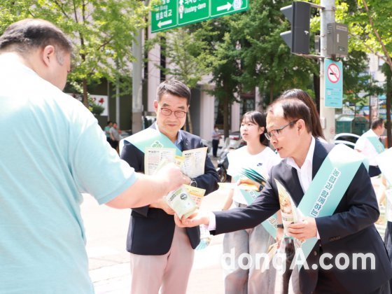 여영현 상호금융대표이사, 문석근 농협재단 사무총장 등 임직원과 함께한 이날 행사에서 시민들에게 우리쌀 간식 2천개를 나눠주며 쌀의 영양학적 가치를 알렸다.