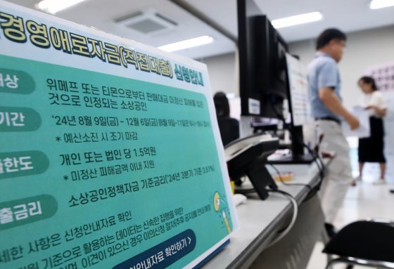 서울 종로구 소상공인진흥공단 서울중부센터에 직접대출 신청 안내문이 붙어 있다. /뉴스1중소벤처기업부가 하루만에 초과 소진됐던 중소벤처기업진흥공단의 티몬·위메프(티메프) 피해기업 대상 긴급경영안정자금을 증액하기로 결정했다. 증액 규모는 추후 공개한다.