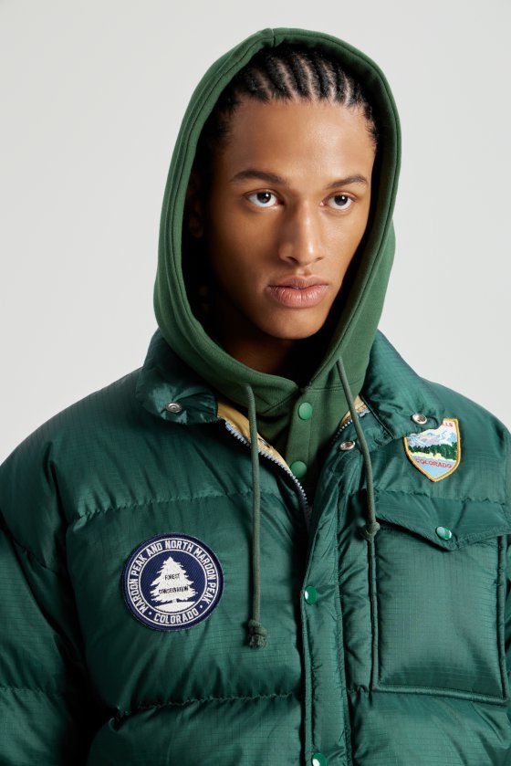 아우터 라인의 대표 아이템은 튼튼하고 실용적인 미국 아웃도어 스타일을 의미하는 ‘헤비 듀티’ 트렌드에서 영감을 얻은 다운 재킷이다. ‘헤비 듀티 립스탑 포켓 패치 다운 재킷’은 립스탑 원단 겉감, 폴리에스터 타프타 원단의 안감, 덕 다운 충전재로 만들어졌다. 특히 양 사이드 포켓 안감에 기모 트리코트 원단이 덧대져 핸드워머 기능을 더했다고 한다.