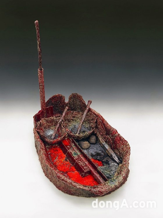 이번 전시 ‘먼지 덮인 계단 위 쉬고 있는 정원사’는 원초적인 힘을 느낄 수 있는 작품들로 구성된다. 주요 전시 작품으로는 강렬한 색상과 콜라주 조각들이 특징인 ‘터바인(TURBINE)’ 시리즈와 세라믹과 유약으로 무덤을 형상화한 ‘바진 테크놀로지/드라큘라 보트(Basin Theology/Dracula Boat)’, 1960년대 미국 반전 시위에서 착안한 ‘플라워 파워(Flower Power)’, 작가의 섬세함이 돋보이는 ‘DR’ 연작 등이 있다.