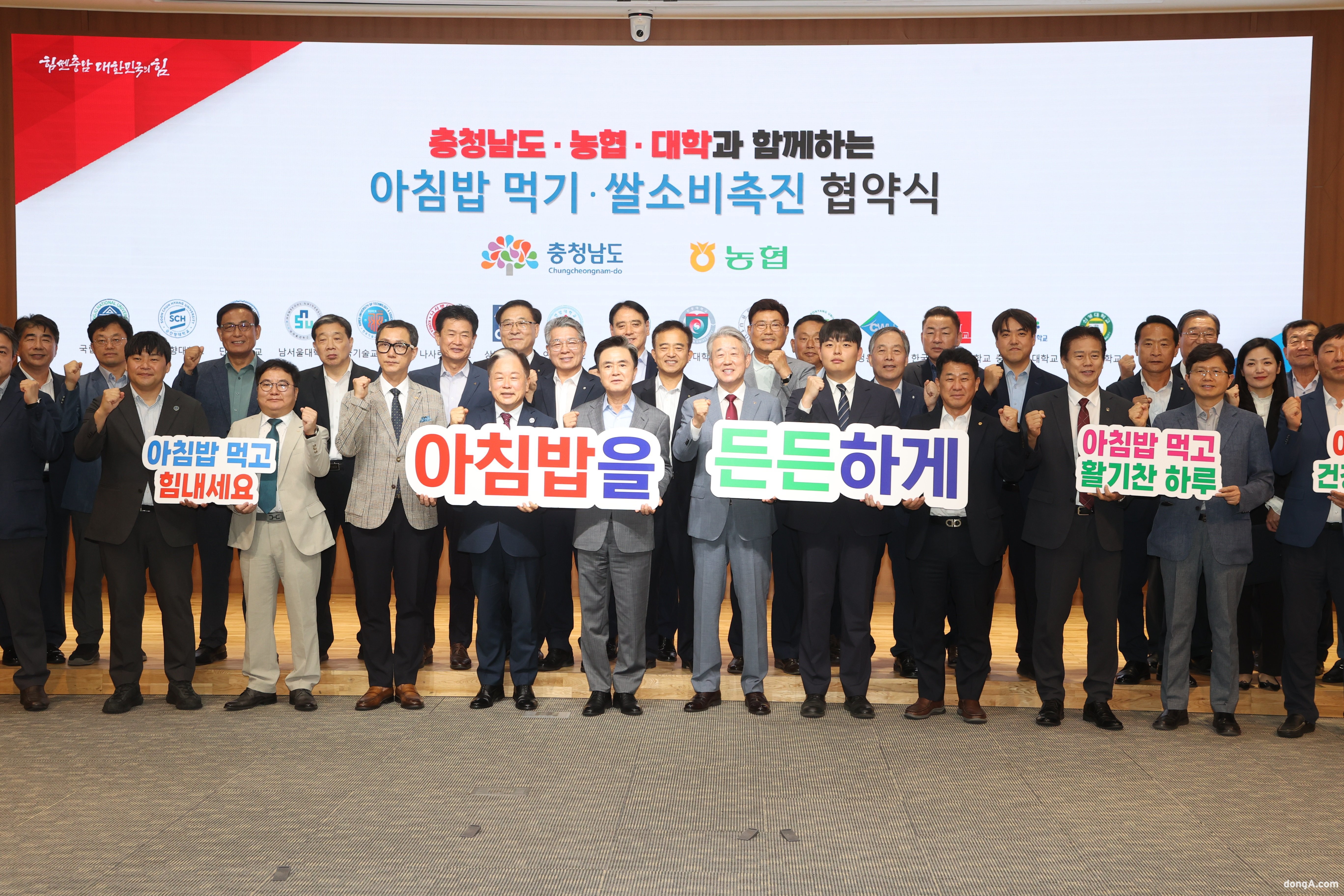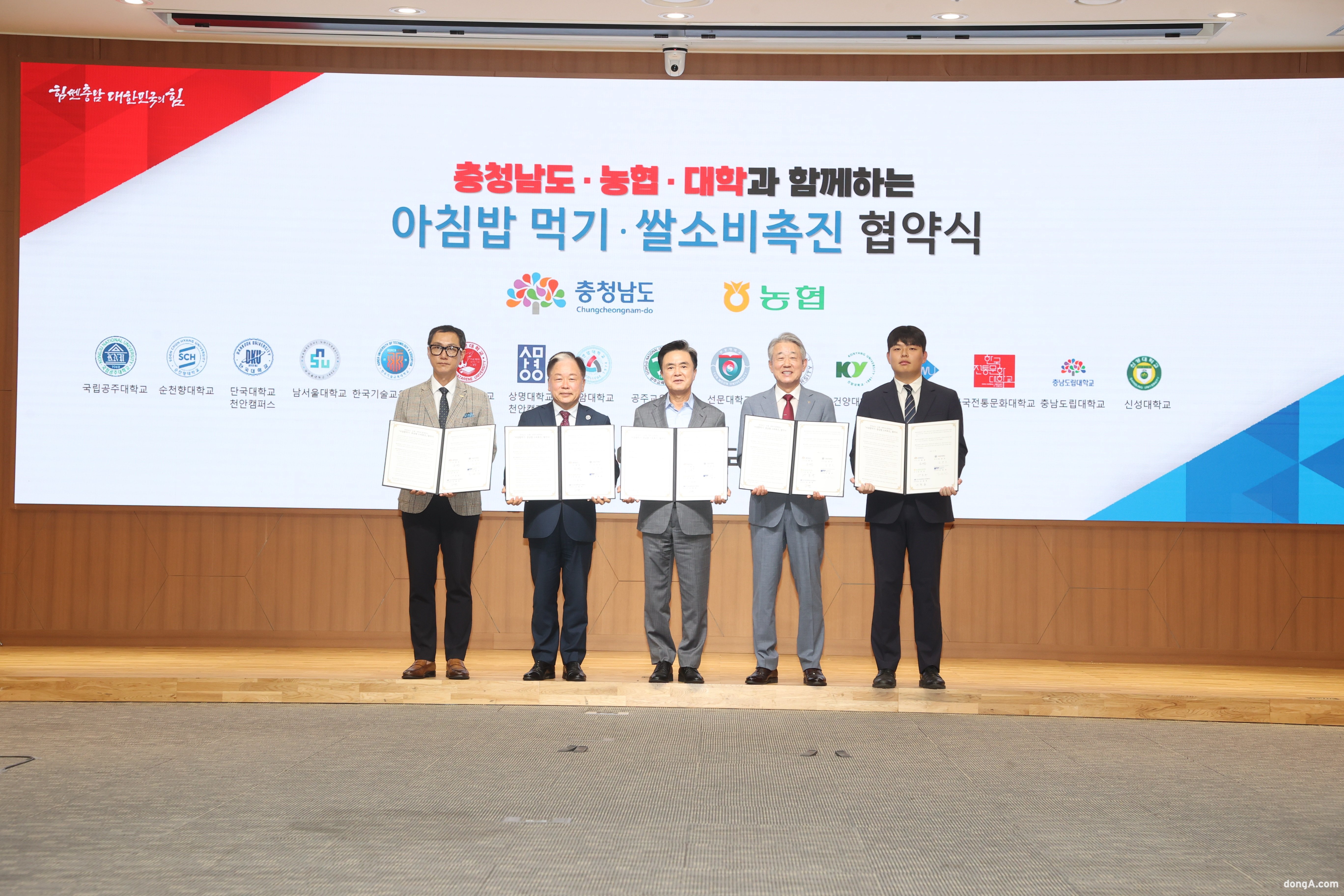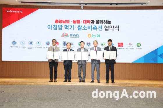농협중앙회와 충청남도가 26일 충남도청 대회의실에서 쌀 소비 촉진을 위한 ‘대학생 아침밥 먹기 · 충남쌀 소비촉진’ 업무협약을 체결했다.