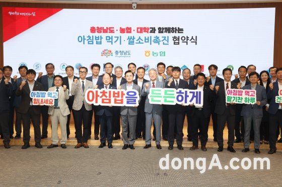 농협중앙회와 충청남도가 공동추진하는 대학생 아침밥 먹기 프로젝트 참여 대학은 공주대학교, 남서울대학교, 단국대천안캠퍼스, 한국기술교육대학교, 나사렛대학교, 상명대천안캠퍼스, 연암대학교, 공주교육대학교, 순천향대학교, 선문대학교, 유원대학교, 건양대학교, 청운대학교, 충남도립대학교, 한국전통문화대학교이다.정진수 동아닷컴 기자 brjeans@donga.com