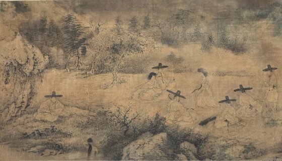호방한 양반들이 야외에서 악사와 기생들을 대동, 풍류를 즐기는 내용으로 신윤복 풍속화중 가장 에로틱한 작품으로 평가 되고 있다.