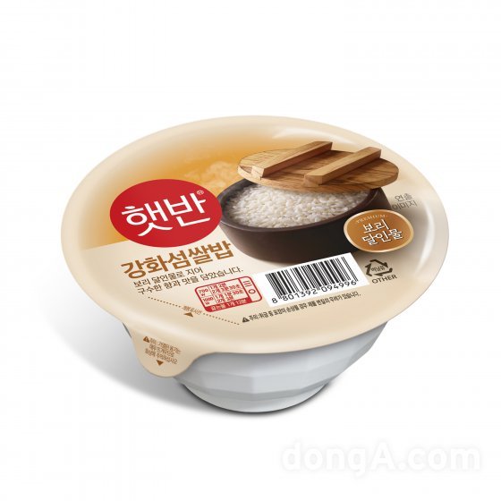 ‘햇반 강화섬쌀밥’은 기존 즉석밥과는 다른 제조법과 디자인을 보인다. 이마트 바이어의 제안으로 보리 달인 물을 첨가해 쌀의 풍미를 더하고, 집밥의 따뜻한 느낌을 살리기 위해 밥그릇 모양의 용기에 담아 고급스러움을 강조했다.