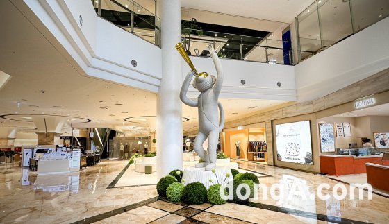 이어 현대백화점은 MZ세대의 문화적 욕구를 충족시키기 위해 매장 곳곳을 전시·체험형 문화예술 공간으로 꾸몄다. 그중에서도 1층과 2층을 관통하는 약 5m 높이의 예술 작품 ‘더 비저너리(The VISIONARY)’가 눈길을 끈다. 이 작품은 세계적인 산업 디자이너 하이메 아욘(Jaime Hayon)이 디자인한 상상 속 동물 조각이다.