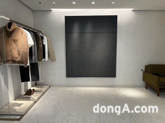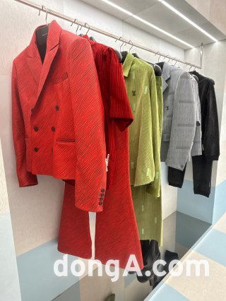 컬렉션에서 만나볼 수 있는 주요 아이템은 단풍색 테일러드 코트다. 박서보 화백의 묘법 (Écriture no.171230) 작품에서 재해석 한 울 자카드 코트다. 톡톡한 재질의 코트가 미니멀하면서도 수직선 디자인으로 강렬한 인상을 준다. 코트에는 박서보 화백의 유니크한 감각을 구현한 라벨이 부착됐다.