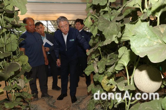 강호동 농협중앙회장이 4일 경북 경주시 소재 멜론 재배 농가를 방문했다.