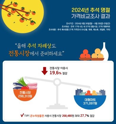 “추석 차례상 비용, 전통시장이 대형마트보다 20% 저렴”