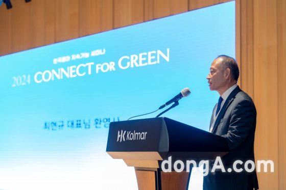 최현규 한국콜마 대표한국콜마가 기후위기 극복과 지속 가능한 성장에 앞장서고자 제2회 지속가능 세미나 ‘커넥트 포 그린(CONNECT FOR GREEN)’을 개최했다. 한국콜마는 지난 5일 서울 서초구 한국콜마 종합기술원에서 관련 세미나를 개최했다고 6일 밝혔다.
