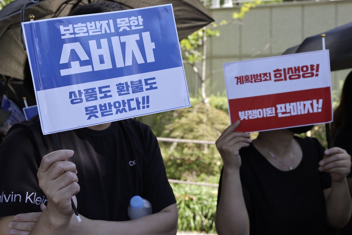 티메프 피해자 검은우산 비대위가 30일 서울 서초구 서울중앙지방법원 앞에서 집회를 열고 구영배 큐텐 대표 구속 수사를 촉구하고 있다. 2024.08.30.뉴시스정부와 국민의힘이 9일 ‘티몬·위메프(티메프) 사태’ 재발을 막고 플랫폼 공정 경쟁을 촉진하기 위한 입법 방향을 논의한다.