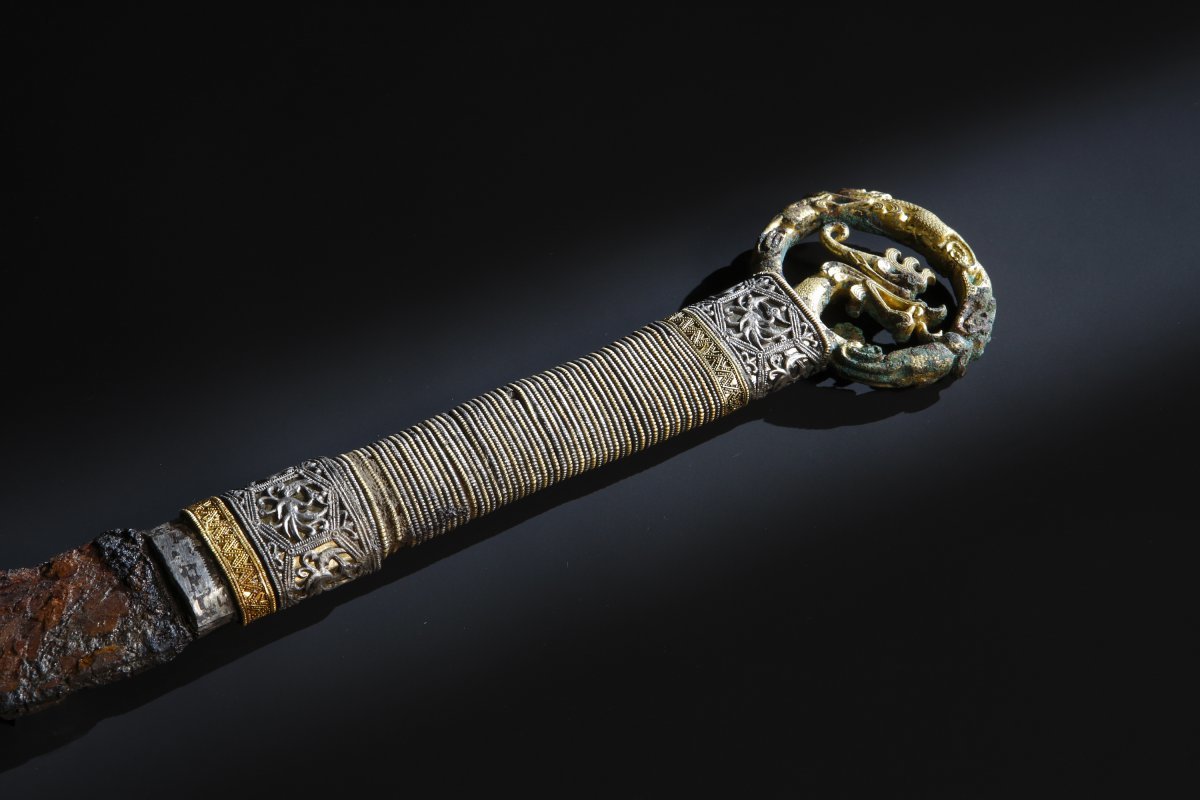 전시장에선 무령왕릉에서 출토된 ‘용봉황무늬 고리자루 큰칼’을 볼 수 있다. 무령왕의 허리 부근에서 발견된 칼의 둥근 고리에는 두 마리의 용이 새겨져 있다. 칼자루 양끝에는 금판 위에 봉황무늬 등을 새긴 은판을 덧씌웠고, 그 사이에는 금실과 은실을 교대로 감아 화려함을 더했다.