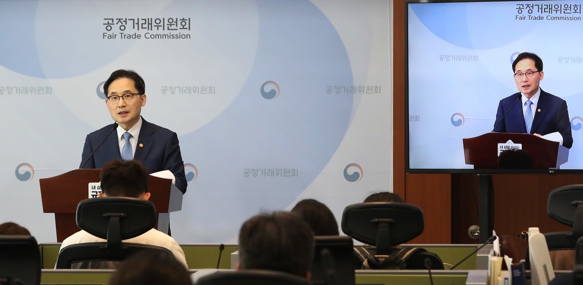 한기정 공정거래위원장이 9일 오후 세종시 정부세종청사에서 열린 플랫폼 공정경쟁 촉진 및 티몬 · 위메프 사태 재발방지를 위한 입법 방향에 대한 당정협의 최종 내용을 발표하고 있다.2024.9.9/뉴스1 ⓒ News1 김기남 기자