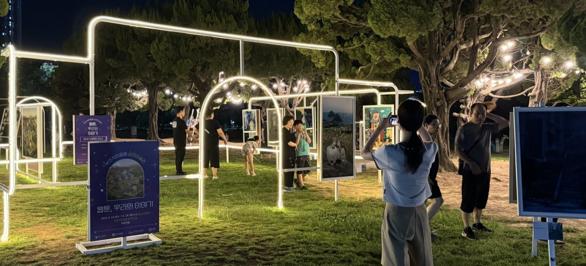 부산시설공단은 올 11월 18일까지 부산진구 부산시민공원 향기의 숲 일원에서 야외 심야미술관 전시 ‘웹툰, 우리의 이야기’를 개최한다고 23일 밝혔다. 시설공단은 부산정보산업진흥원의 웹툰페스티벌에 출품됐던 작품 가운데 36점을 엄선해 심야미술관에서 전시한다. 태종대 수국축제와 남포동 BIFF광장, 중앙동 40계단, 다대포 일몰 등 부산의 명소를 작가들의 상상력으로 재해석한 작품들이다.
