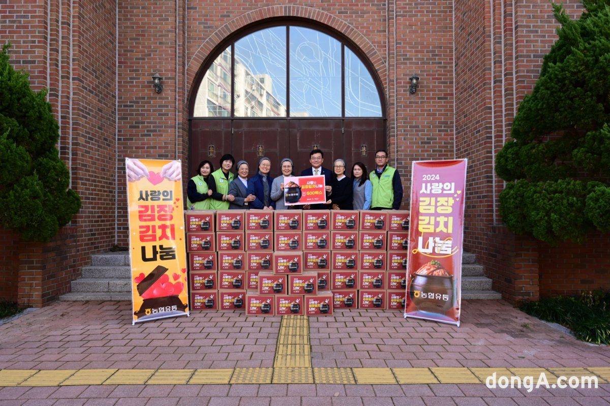 농협유통이 25일 서울 서초구 까리따스방배종합사회복지관에서 사랑의 김치 전달식을 개최했다.