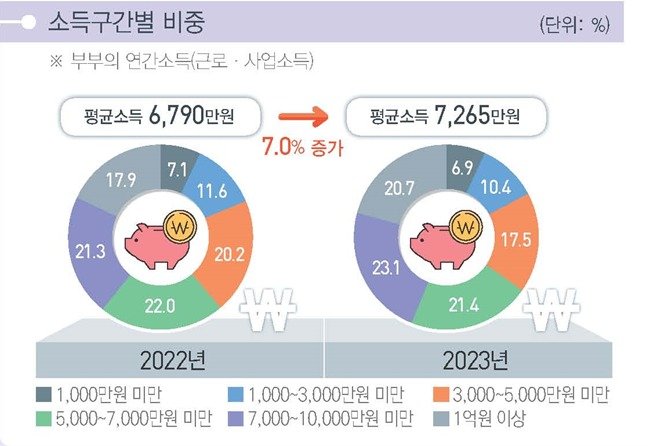 소득 증가로 인해 2022년과 비교해 5000만~7000만 원 구간과 7000만~1억 원 구간의 비중 순위가 뒤집어졌다.