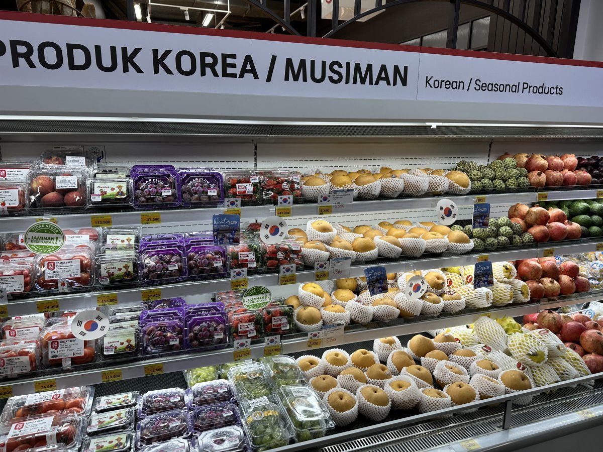 자카르타 롯데마트에서 판매 중인 한국산 과일들. 과일 가격 옆에 태극기가 붙여져 있다. 뉴스1