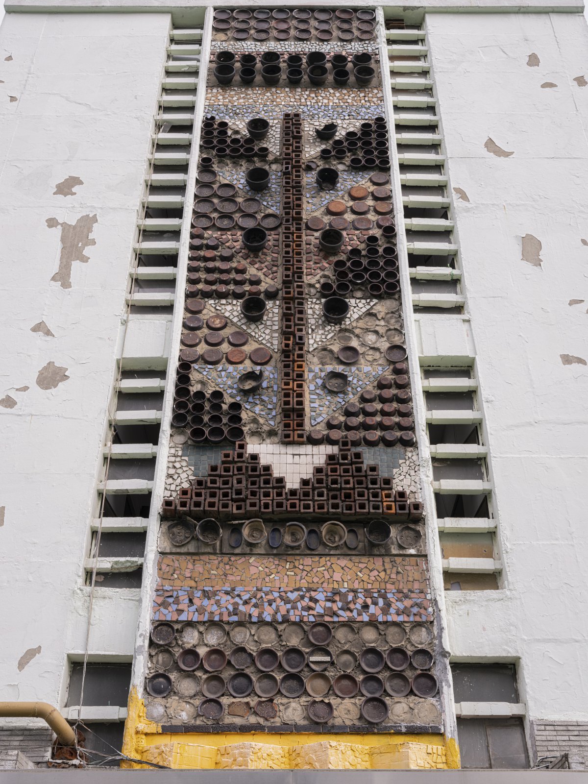 김수근 설계, 도자 외벽 작가 미상 ‘세운상가’(1960년대). 장준호 촬영. 국립현대미술관 제공전시는 연대기 순으로 구성된다. 1부보다 앞선 ‘프롤로그’ 전시장은 1950년대 한국 현대 도자공예의 출발을 조명한다. 국립박물관(현 국립중앙박물관) 부설 기관으로 설립된 한국조형문화연구소가 설립한 ‘성북동 가마’와 조각가 윤효중(1917~1967)이 세운 한국미술품연구소가 운영한 ‘대방동 가마’에서 제작된 조선백자와 고려청자 등이 공개된다.