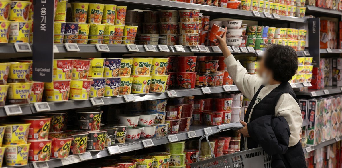 [서울=뉴시스] 김선웅 기자 = 식품 원자재 가격 상승, 인건비·유류비 상승으로 채소·과일, 가공식품 등 생활물가가 급등하고 있다. 통계청 국가통계포털에 따르면 올해 10월 소비자물가는 전년 동기 대비 3.8% 상승했다. 이 중 과일, 채소 및 라면, 참치, 만두, 식용유, 참기름, 우유 등 품목의 가격이 크게 상승하거나 가격은 유지하되 제품의 중량이 줄어들며 실질적으로 가격인상과 동일한 것으로 나타났다. 13일 서울 소재 유통매장에서 각종 라면이 판매되고 있다. 2023.11.13. mangusta@newsis.com팬데믹 이후 우리나라에서는 저렴한 상품의 가격이 더 크게 상승하는 ‘칩플레이션’ 현상이 나타났다는 연구 결과가 나왔다. 저소득층이 고소득층보다 더 높은 인플레이션을 경험했다는 분석이다.