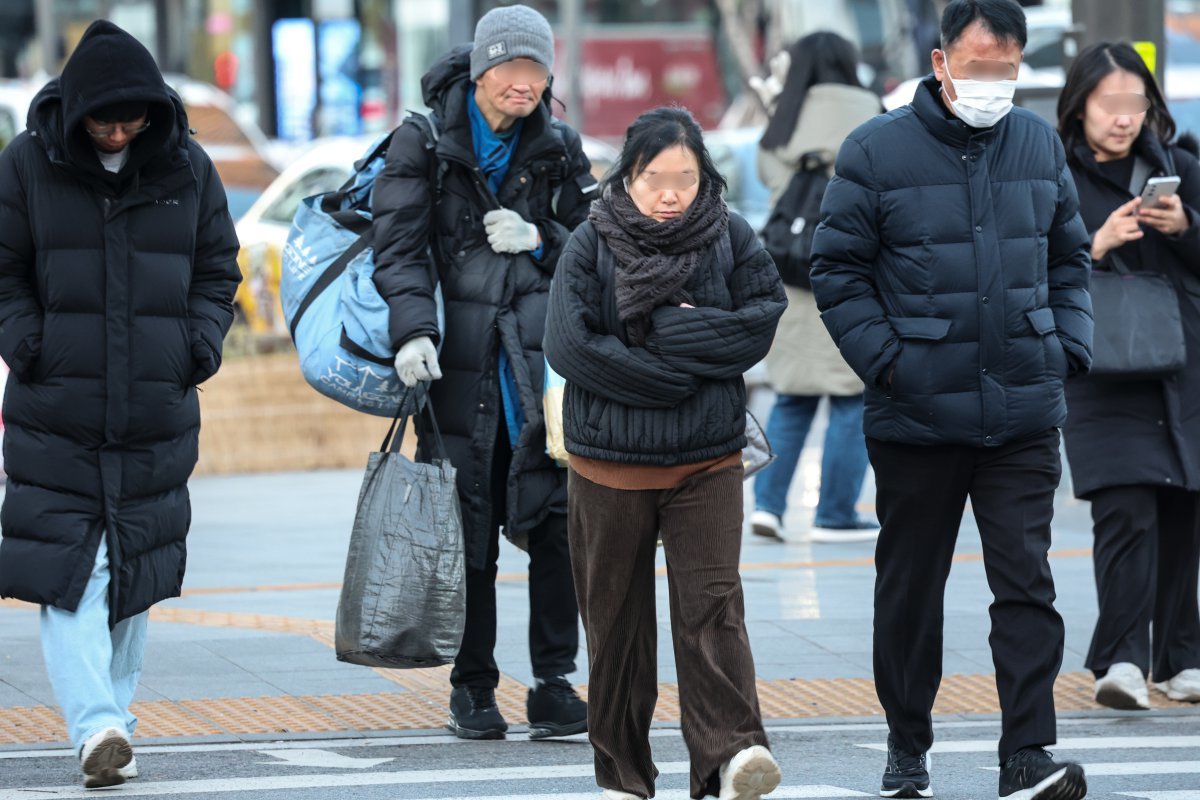 [서울=뉴시스] 김근수 기자 = 추운 날씨를 보인 12일 오전 서울 종로구 세종대로에서 시민들이 출근길에 나서고 있다. 2024.12.12. ks@newsis.com
