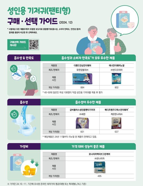 소비자원, 팬티형 성인용 기저귀 9개 제품 시험평가 결과