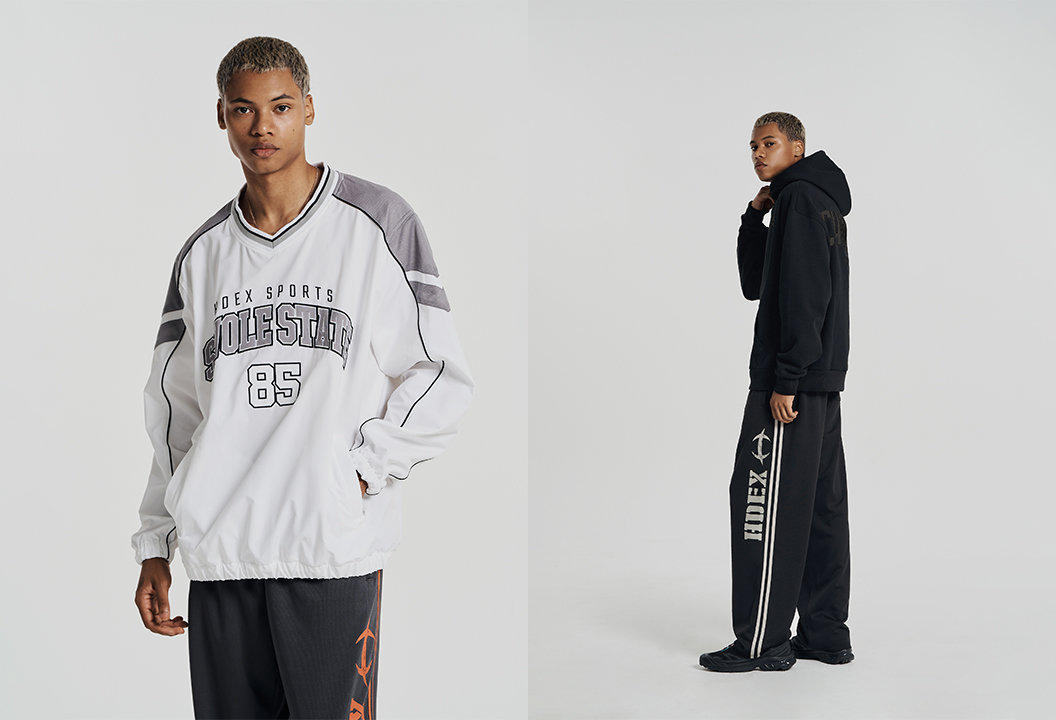 와이드한 핏과 캐주얼한 디자인이 특징인 에이치덱스 ‘자이언트핏 매쉬 와이드 팬츠’와 ‘컬러 블럭 파이핑 웜업 풀오버’ 등도 인기를 끌었다.