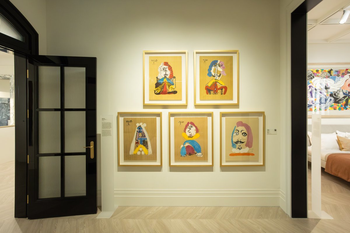 다음 전시장 ‘테라스 하우스’로 넘어가면 30대 부부의 공간이 펼쳐진다. 클로드 비알라, 이강소, 이은, 프랭크 스텔라 등 화려하고 생동감 넘치는 작품들이 배치됐다. 테라스엔 가구와 도예 작품을 제작하는 로마넬리 부부의 가구나 오브제가 눈길을 끈다. 특히 이 ‘집’ 입구엔 파블로 피카소의 석면 판화가 걸려 있다. 종이 작품인데다 색감이 알록달록해 관객들 반응이 좋다고 한다.