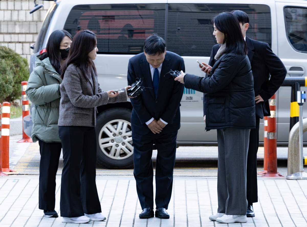 티메프 대규모 미정산 사태를 초래한 혐의를 받는 구영배 큐텐그룹 대표가 18일 오전 서울 서초구 서울중앙지방법원에서 열린 구속 전 피의자 심문(영장실질심사)에 출석하며 고개숙여 인사하고 있다. 2024.11.18. [서울=뉴시스]