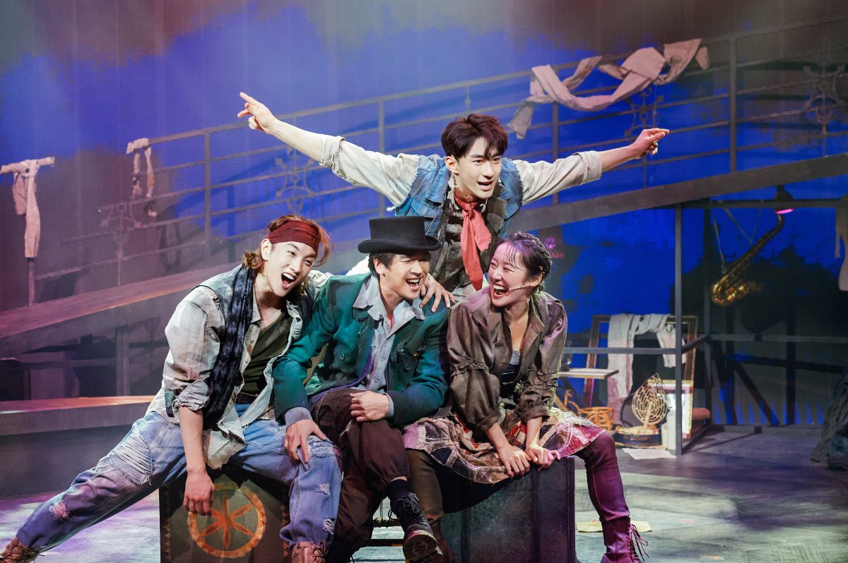 뮤지컬 ‘알라딘’에서 친구들과 함께 한 알라딘(오른쪽에서 두번째·김준수). 에스앤코 제공