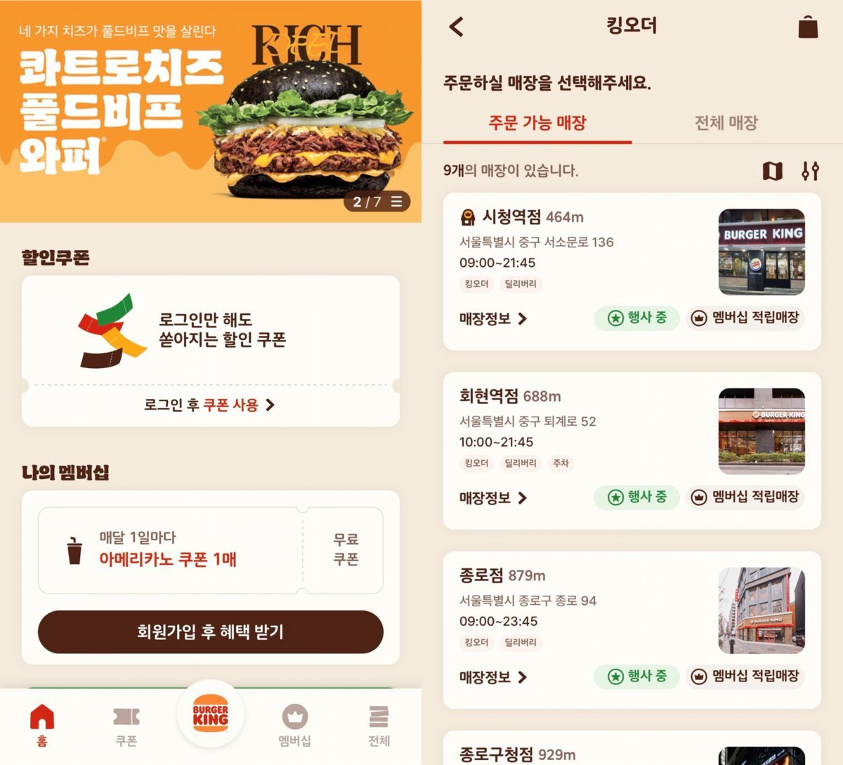 또 이번 앱 개편 과정에서 앱으로 제품을 미리 주문하는 ‘킹오더’의 픽업·배달 반경을 기존 2km에서 3km로 확대했다.