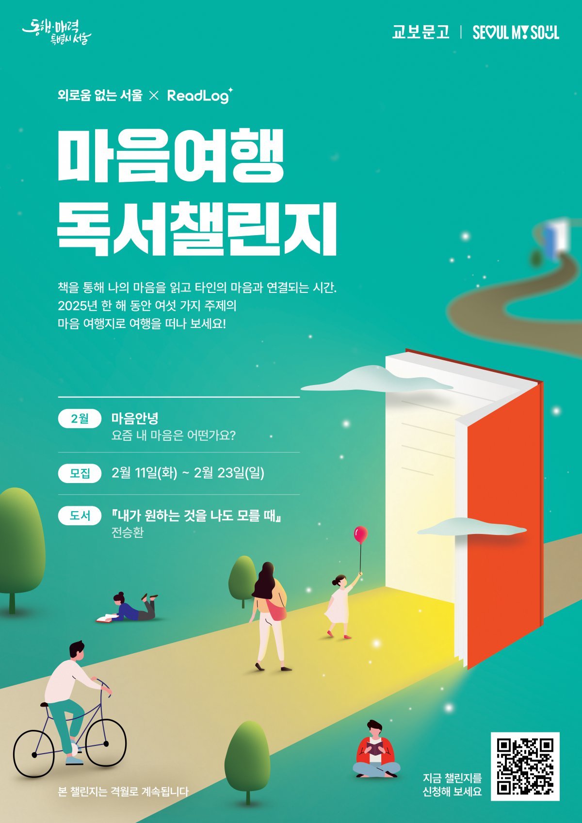 황성원 서울시 고독대응과장은 “교보문고와 함께 기획한 마음여행 독서챌린지를 통해 책을 읽고 기록하면서 정서적 안정감을 얻고 타인과의 관계를 넓혀 외로움을 극복하고 소통의 소중함을 느끼길 바란다”고 말했다.