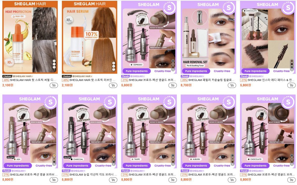 중국 패션 e커머스 쉬인도 국내 공식 홈페이지에서 자체 뷰티 브랜드 ‘쉬글램’(sheglam) 판매를 시작했다.