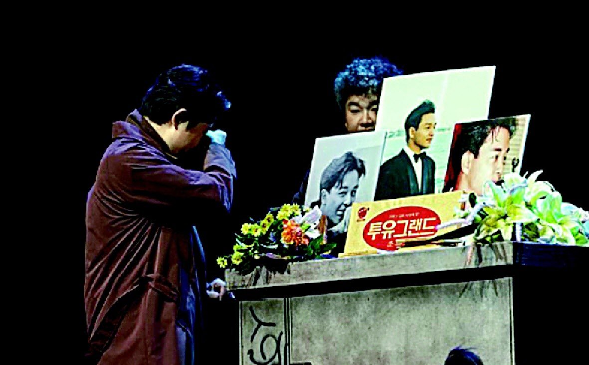 연극 ‘굿모닝 홍콩’에서 ‘장사모’ 회원이 장궈룽을 추모하는 장면. 국립정동극장 제공