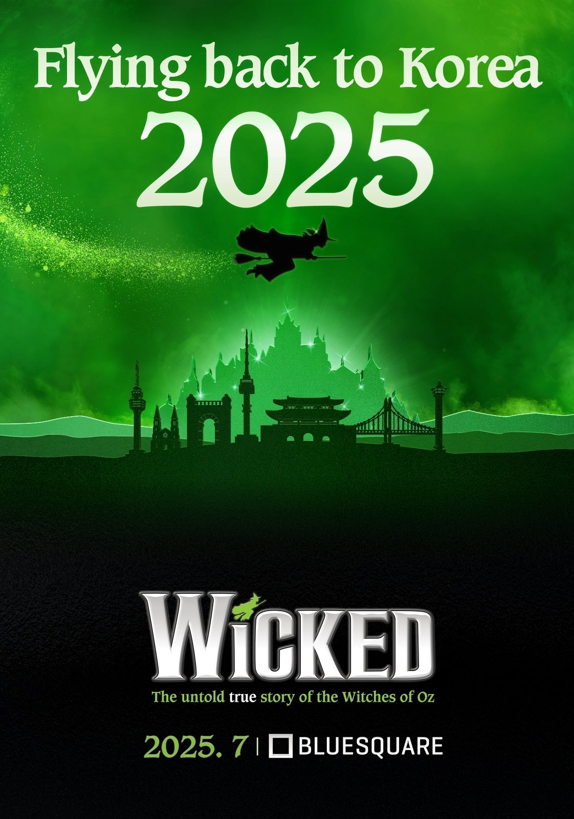‘위키드’ 투어팀 내한공연은 서울 블루스퀘어 신한카드홀에서 7월 12일부터 10월 26일까지, 부산 드림씨어터에서 11월 개막하고, 대구 계명아트센터에서 2026년 1월 개막 예정이다.