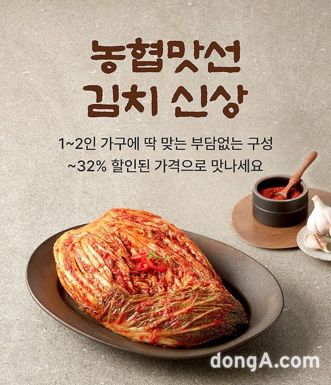 농협에서 운영하는 농식품 구독서비스 ‘월간농협맛선’이 1·2인 가구를 겨냥해 맞춤형김치 구독서비스를 새롭게 선보인다. 소용량 포장으로 더욱 실속있는 소비가 가능하도록 했다.
