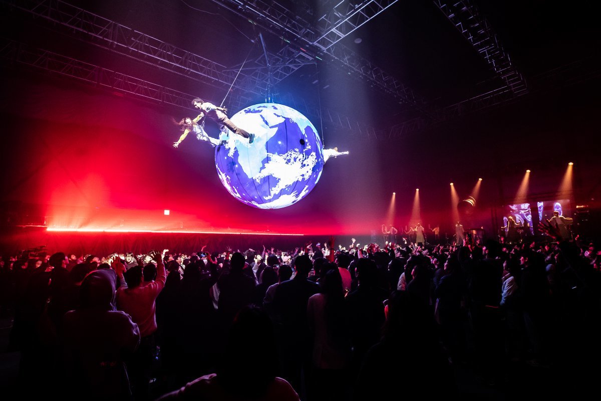 ‘모험(Adventure)’과 ‘천국(Heaven)’이 결합된 아벤은 이전 공연과 달리 긍정적이고 밝은 에너지를 발산한다. 파비오 다킬라 총괄 코디네이터는 공연 첫날 열린 간담회에서 “이 공연은 사람들의 소통이 단절됐던 팬데믹 시기에 기획됐다”며 “사람들이 다시 소통하며 인간성을 회복하고, 행복감을 되찾자는 내용”이라고 소개했다. 디에고 이그나시오 페르난데스 마요라 무대 감독은 “관객들이 ‘불금(불타는 금요일)’을 즐기는 자유로운 마음으로 참여해 주길 바란다”고 말했다.