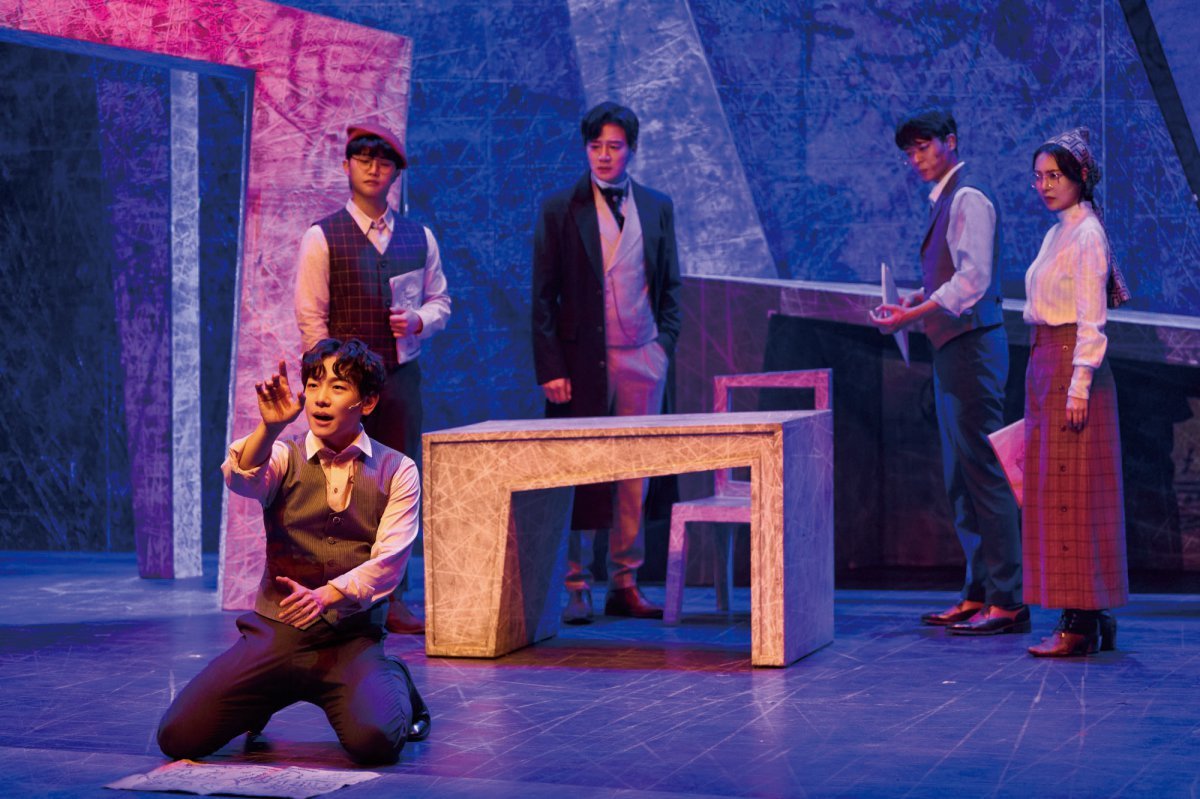 뮤지컬 ‘니진스키’에서 새 작품에 대해 설명하는 니진스키(신주협)를 발레 뤼스 단원(이지명)과 디아길레프(김종구), 스트라빈스키(박선영), 발레 뤼스 단원(남가현)이 바라보고 있다.(왼쪽부터) 쇼플레이 제공‘춤의 신’이라 불린 러시아 천재 발레리노 니진스키(1890∼1950)가 프랑스 파리에서 화려하게 날아올랐지만 시대를 앞서 간 모험으로 인해 추락한 과정을 그린 창작 뮤지컬이다.