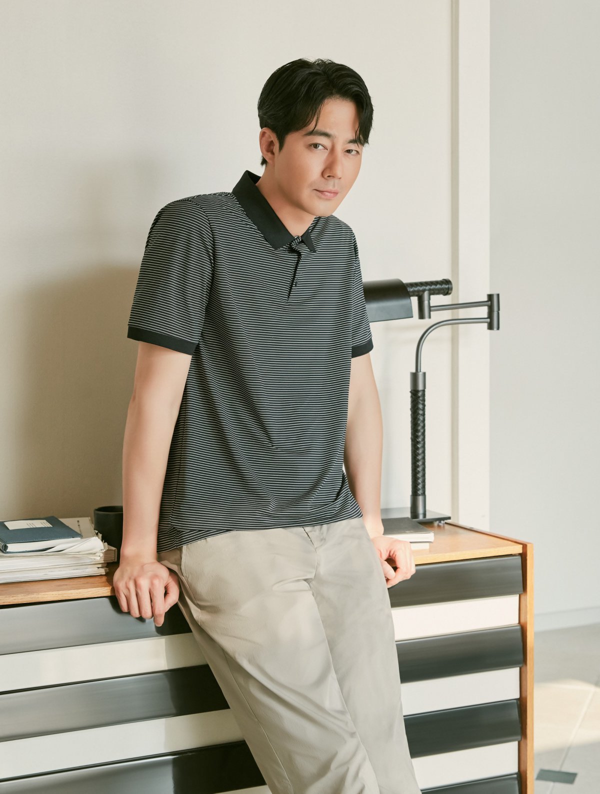 K2 ‘코드텐 아이스 스트라이프 폴로’와 ‘코드텐 아이스 슬랙스’를 착용한 K2 모델 조인성.‘코드텐 아이스 슬랙스’는 초냉감 원사를 적용한 내추럴 원단으로 영구적인 시원함과 편안한 착용감으로 여름철 출퇴근룩에 적합하며 구김이 적고 신축성이 뛰어나 장시간 착용에도 쾌적함을 유지해준다. 남성용은 베이지, 네이비, 블랙 컬러이며 여성용은 다크 베이지, 블랙 컬러로 출시됐다. 가격은 13만9000원.