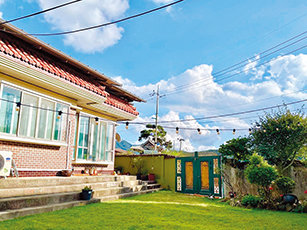 김부자댁둘째딸 제공복고로 SNS 피드를 도배하고 싶다면 이곳이 정답. 자개농과 꽃무늬 침구, 할머니 꽃 바지와 뽀글이 가발 소품이 마치 영화 세트장에 와 있는 듯한 착각을 불러일으킨다. 투숙객 누구나 복고 아이템을 이용할 수 있어 과거로의 여행을 즐기기 그만이다. 마당 한쪽의 컨테이너 클럽에서는 네온 조명 아래 흥겨운 노래가 흐르고, 포장마차 감성의 테이블과 빈티지한 카페 공간이 마련돼 있어 머무는 내내 지루할 틈이 없다. ‘가장 재미있는 촌’을 경험하고 싶은 이들에게 최고의 장소다.