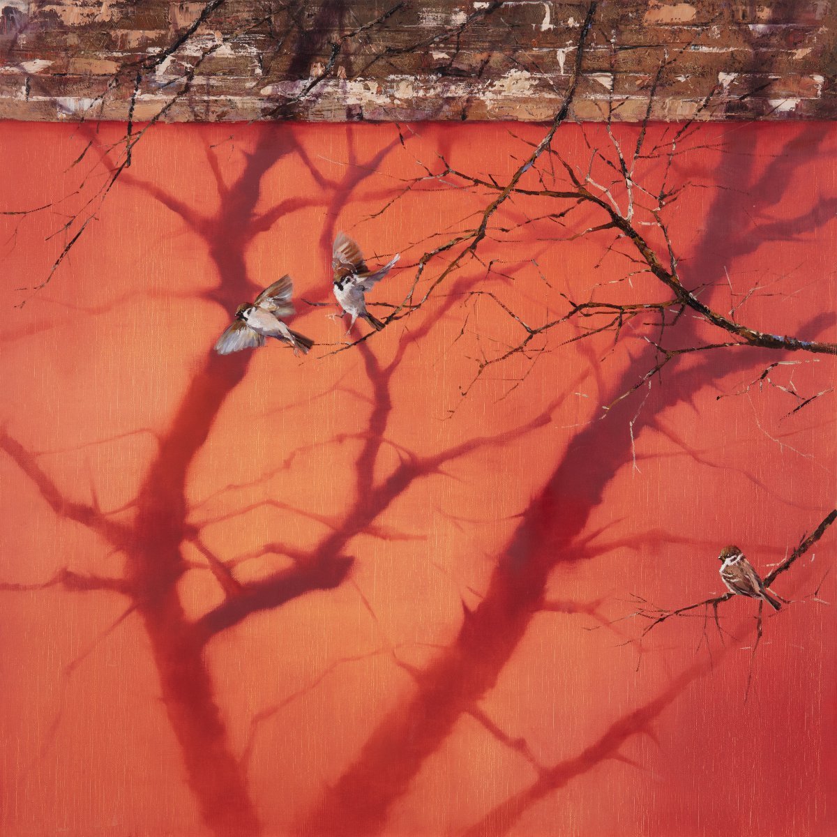 조경아 작가는 나무 그림자와 참새라는 상징을 회화로 선보인다. 그림자는 보이지 않는 내면의 감정에 대한 은유다. 참새는 희망과 자유, 평범하지만 따뜻한 위로의 상징이다. 특히 그림자라는 개념을 중심으로 현대인의 불확실한 내면세계를 여러모로 조명한다. 빛이 변화하는 순간마다 달라지는 그림자의 형태처럼 인간 감정의 유동성과 다중적인 면모를 표현한다.