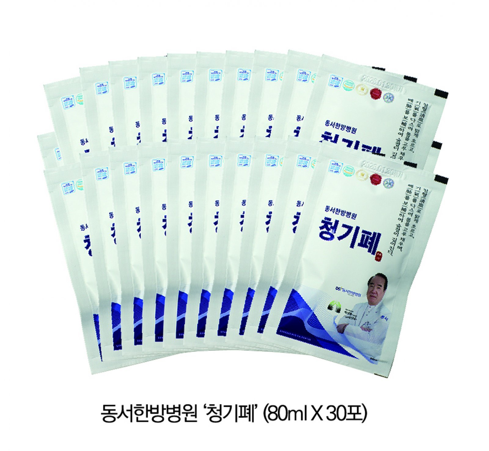 동서한방병원 건강기능식품 ‘청기폐’.청기폐는 처방의 재현을 넘어 현대인이 쉽게 복용할 수 있고 흡수율이 높은 건강기능식품 형태로 이번에 출시했다. 청기폐는 코로나19 후유증 완화에 효과가 있으며 △누렇고 끈적한 가래로 고통받는 사람 △잦은 기침과 함께 숨쉬기 답답함을 느끼는 사람 △미세먼지, 황사 등 유해 환경에 자주 노출되는 사람 △만성 기관지염, 천식 등으로 불편함을 겪는 사람 △환절기마다 호흡기질환으로 고생하는 사람 △면역력 강화와 함께 폐 건강을 미리 지키고 싶은 사람에게 권한다. 57년간 임상을 통해 많은 효과를 봤으며 박 원장이 직접 처방했던 약이 건강기능식품으로 나온 것이다.