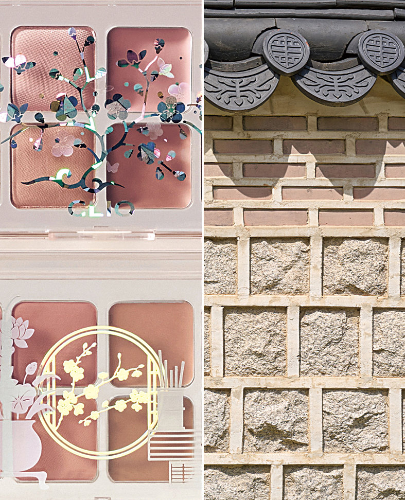 팔레트 용기의 양쪽 끝 창틀 밖으로는 매화와 모감주나무의 풍경이 펼쳐진다. 왕비가 창가에 앉아 아름다운 풍경을 바라보며 화장을 즐기는 장면이 절로 연상된다. 전통 요소를 현대 소비자에게 감각적으로 전달하기 위해 국가유산청과 클리오가 치밀하게 고민한 결과다.