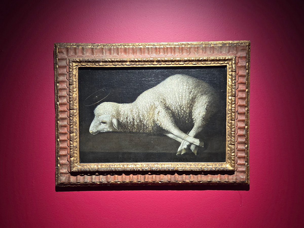 이번 전시에 출품된 샌디에이고 미술관 소장본은 그 중에서도 특히 종교적 색채가 짙은 작품으로 꼽힌다. 그림 속 선반에는 ‘양처럼’을 뜻하는 라틴어 글귀(TANQUAM AGNUS)가 작게 새겨졌고, 양의 머리엔 은은한 후광이 그려져 있다.