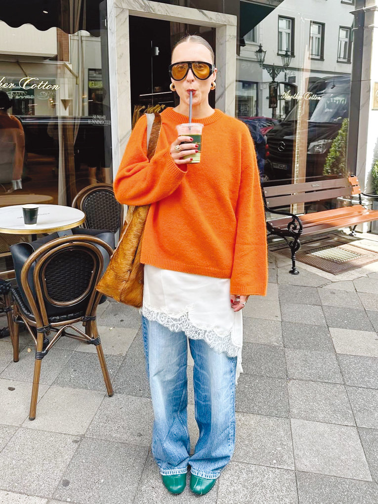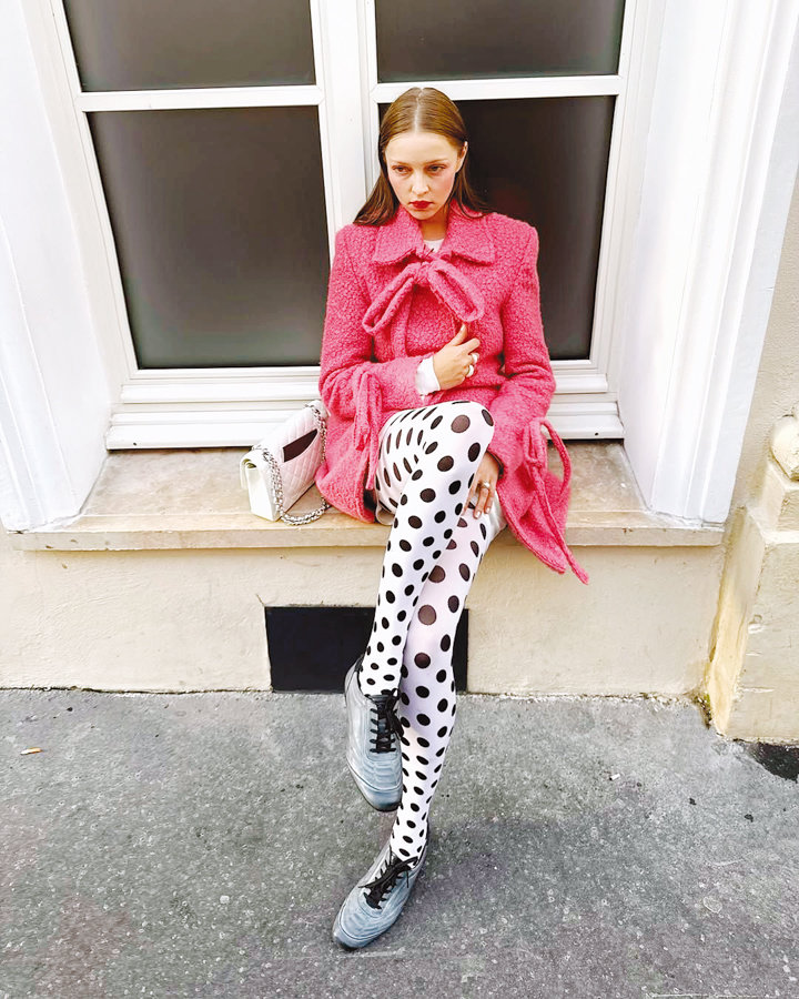 @lara_bsmnn스커트를 돋보이게 하는 가장 무난한 방법은 은은하게 비치는 20데니어 이하의 스타킹을 활용하는 것. 미니스커트나 무릎 아래까지 내려오는 기장에 매치하면 클래식은 물론 관능미까지 최대치로 끌어올릴 수 있다. 여기에 약간의 굽이 있는 힐이나 컬러 삭스를 더하면 Y2K 무드가 완성된다. 김지희 스타일리스트는 “데니어 스타킹은 특히 레더 스커트와 잘 어울린다”며 “시스루 스타킹의 은은한 광택이 가죽 특유의 탄탄한 텍스처를 더욱 돋보이게 한다”고 말했다. 로맨틱한 분위기를 내고 싶다면 롱스커트와 데니어 스타킹의 조합을 추천한다. 여기에 톤온톤 니트와 롱 코트를 더하면 차분한 분위기까지 자아낼 수 있다.