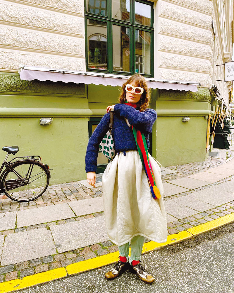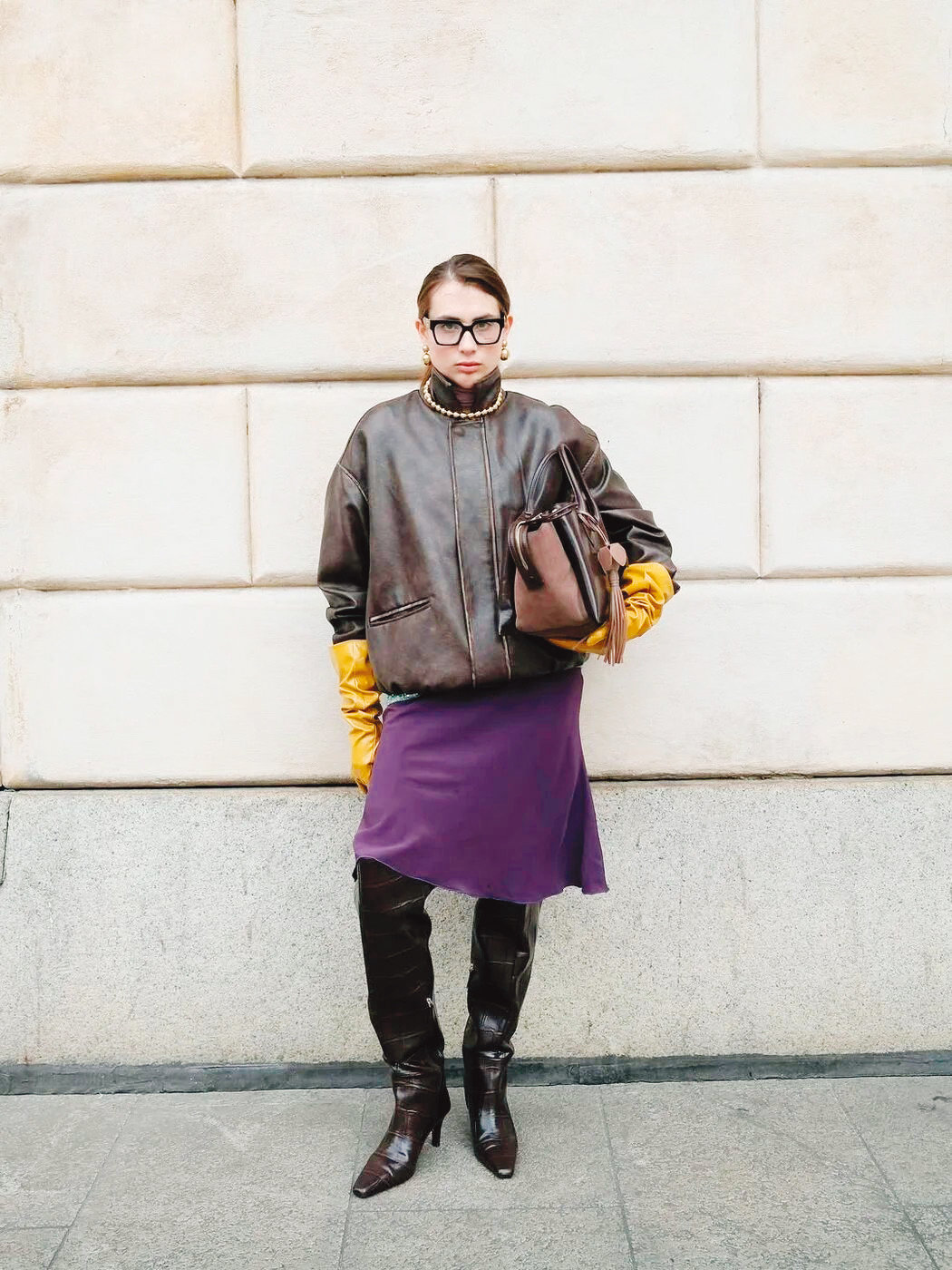 @chiarabaratello활동성 좋은 치마로 치자면 A라인 맥시스커트만 한 게 없다. 넉넉한 품으로 어떤 체형이든 부담 없이 즐길 수 있다. 맥시스커트에 대비되는 색상의 부츠를 신으면 걸을 때마다 힐끗 비치는 부츠 컬러가 룩에 위트를 더해준다. A라인 스커트의 단정한 매력을 부각하고 싶다면 어깨만 감싸는 볼레로를 걸칠 것. 여기에 빅 백을 더하면 성숙하고 우아한 느낌을 살릴 수 있다.